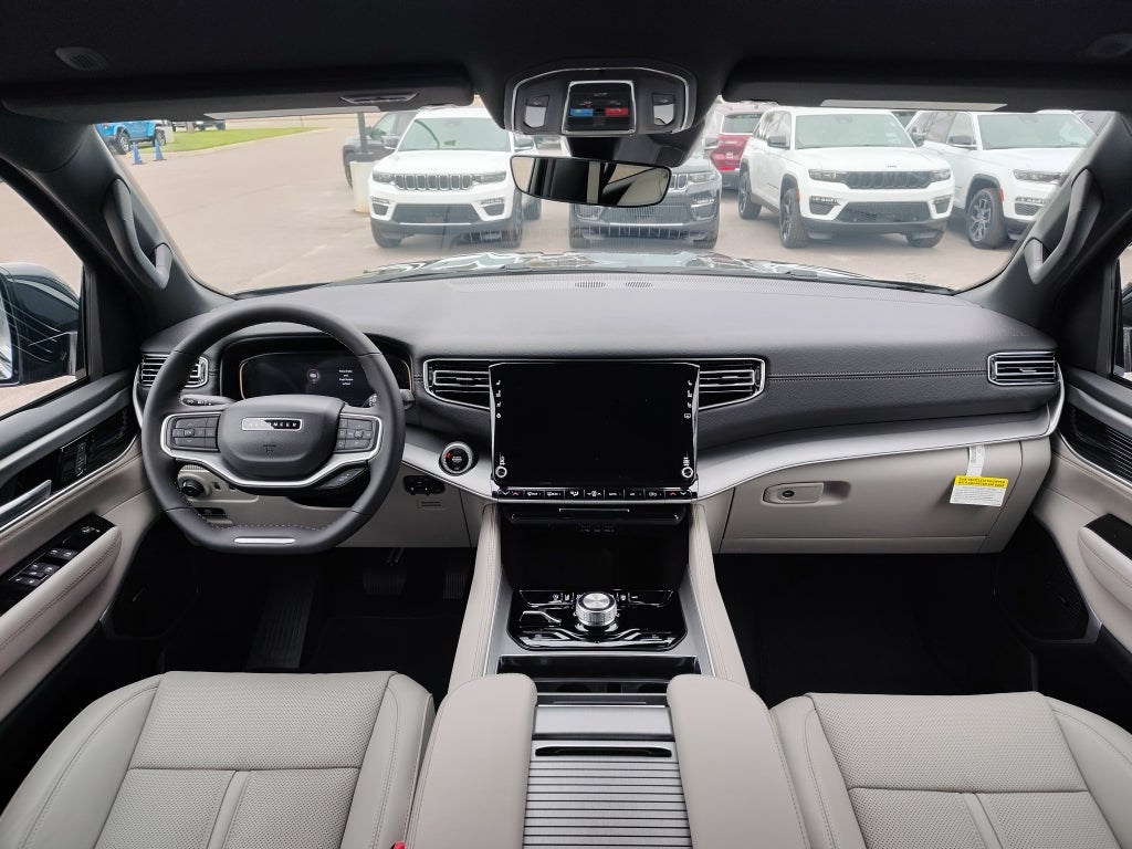 An off-road package is equipped on this unit. Keep your hands warm all winter with a heated steering wheel in this Jeep Wagoneer . The vehicle has automated speed control that adjusts to maintain a safe following distance, enhancing highway driving convenience. Start this vehicle from inside with remote start. The leather seats in the vehicle are a must for buyers looking for comfort, durability, and style. The vehicle features a hands-free Bluetooth® phone system. This 2025 Jeep Wagoneer offers Android Auto for seamless smartphone integration. The installed navigation system will keep you on the right path. Protect the Jeep Wagoneer from unwanted accidents with a cutting edge backup camera system. This Jeep Wagoneer's Forward Collision Warning system alerts the driver to potential front-end collisions, enhancing safety. This unit offers Apple CarPlay for seamless connectivity. It emanates grace with its stylish gray exterior. A trailer braking system is already installed on this vehicle.