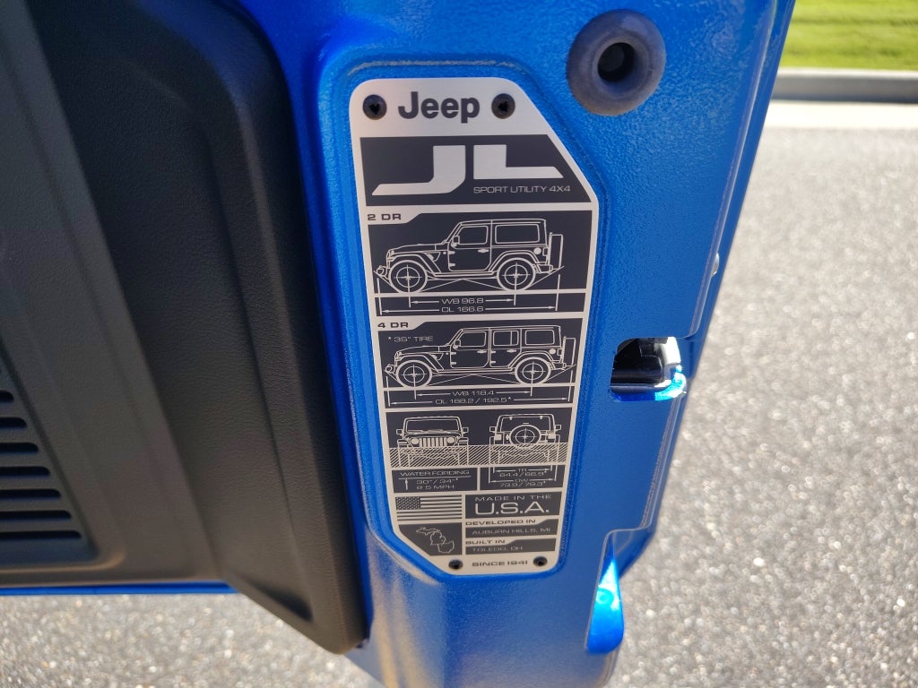 Convenience Group: Universal Garage Door Opener; Heated Front Seats; Heated Steering Wheel. Technology Group: Google Android Auto; SiriusXM Radio Service; 12.3" Touchscreen Display; Integrated Off-Road Camera; HD Radio; Rear View Auto Dim Mirror; Integrated Voice Command with Bluetooth®; Connectivity - US/Canada; Uconnect 5 Navigation with 12.3" Display; GPS Navigation; 4G LTE Wi-Fi Hot Spot; SiriusXM with 360L; Connected Travel and Traffic Services; Apple CarPlay. Quick Order Package 24R Rubicon. Sky 1-Touch Power Top. Alpine Premium Audio System. Hydro Blue Pearlcoat. Body Color Rubicon Highline Flare. **Equipment listed is based on original vehicle build and subject to change. Please confirm the accuracy of the included equipment by calling the dealer prior to purchase.**