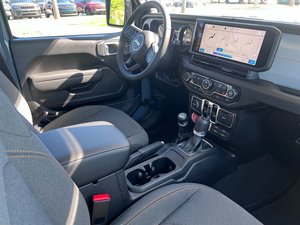 Convenience Group: Emergency/Assistance Call; Front Door Locks 2-Door Passive Entry; Remote Start System; Body Color Fender Flares (2-Piece); Cluster 7.0" TFT Color Display; Universal Garage Door Opener; Daytime Running Lamp System; Heated Front Seats; Air Conditioning W/Auto Temp Control; Heated Steering Wheel; Corning Gorilla Glass. Quick Order Package 24W Willys: LED Taillamps; Protection Sill Rails; 4-Wheel Drive Decal; Black Grille W/Gloss Black Rings; MOPAR All-Weather Slush Mats; LT255/75R17C OWL On/Off Road Tires; Body Color Fender Flares (2-Piece); Front Heavy Duty Red Accent Shock Absorbers; Daytime Running Lamps LED Accents; Front LED Fog Lamps; LED Premium Reflector Headlamps; Electronic Locker Rear Axle; Corning Gorilla Glass; Trailer Hitch Zoom; Class IV Receiver Hitch; Security Alarm; Mold In Color Bumper W/Gloss Black; Advanced Brake Assist; Willys Suspension; Heavy Duty Engine Cooling; Automatic Headlamps; Air Conditioning W/Auto Temp Control; 5. 950 lbs GVWR; Deep Tint Sunscreen Windows; Off-Road Plus Mode; 17" X 7.5" Painted Black Wheels; Willys Hood Decal; Full Speed Forward Collision Warning Plus; Rear Heavy Duty Red Accent Shock Absorbers; Front Door Locks 2-Door Passive Entry; Cluster 7.0" TFT Color Display; Power Heated Mirrors; Auxiliary Switches; Premium Wrapped Steering Wheel; Sun Visors W/Illuminated Vanity Mirrors. Steel Power Dome Hood Package: Power Dome Dual Vented Hood. Black 3-Piece Hard Top. Anvil Clearcoat. MOPAR Spray In Bedliner. MyFlexCare Service Plan. **Equipment listed is based on original vehicle build and subject to change. Please confirm the accuracy of the included equipment by calling the dealer prior to purchase.**