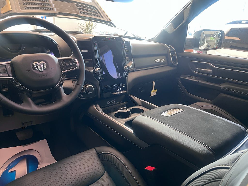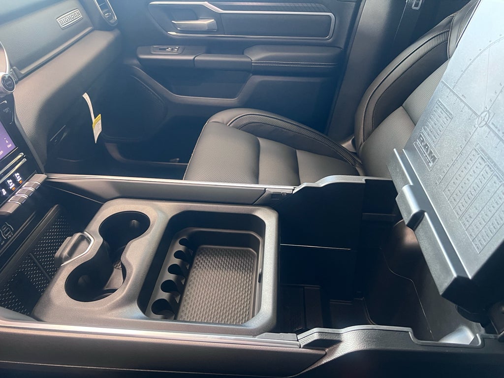 Quick Order Package 27Z Big Horn. Big Horn Level 2 Equipment Group: Google Android Auto; SiriusXM Radio Service; USB Host Flip; Power Adjustable Pedals; Leather Wrapped Steering Wheel; Integrated Voice Command with Bluetooth®; 12" Touchscreen Display; Glove Box Lamp; Auto Power-Folding Mirrors; 115V Auxiliary Rear Power Outlet; Media Hub with 2 Charge Only USBs; Heated Front Seats; Security Alarm; Black Premium Power Mirrors; Apple CarPlay; Premium Overhead Console; 9 Amplified Speakers with Subwoofer; Disassociated Touchscreen Display; Body Color Fender Flares; Remote Tailgate Release; 115V Auxiliary Power Outlet; LED Dome Lamp with On/off Switch; Universal Garage Door Opener; 2nd Row in Floor Storage Bins; Sun Visors with Illuminated Vanity Mirrors; LED Footwell Lighting; Rear Window Defroster; Integrated Center Stack Radio; Rear View Auto Dim Mirror; Rear Power Sliding Window; Connectivity - US/Canada; GPS Navigation; 4G LTE Wi-Fi Hot Spot; GPS Antenna Input; Overhead LED Lamps; Exterior Mirrors with Heating Element; Auto Dim Exterior Driver Mirror; SiriusXM with 360L; Global Telematics Box Module; Connected Travel and Traffic Services; Heated Steering Wheel; Configurable Drive Mode; 400W Inverter; HD Radio; Deluxe Cloth Bucket Seats; Uconnect 5 Navigation with 12.0" Display Radio; Exterior Mirrors with Supplemental Signals; Steering Wheel Mounted Audio Controls; Exterior Mirrors Courtesy Lamps; Air Conditioning ATC with Dual Zone Control; Cluster 7.0" TFT Color Display; Convex Wide-Angle Exterior Mirror Insert. Night Edition: 275/55R20 OWL All Season Tires; Accent Color Premium Power Mirrors; Exterior Mirrors with Supplemental Signals; Black Headlamp Bezels; Exterior Mirrors Courtesy Lamps; Grille Black Surround Black Mesh; Auto Power-Folding Mirrors; Exterior Mirrors with Heating Element; 20" X 9.0" Aluminum Painted Clad Wheels; Auto Dim Exterior Driver Mirror; Black Exterior Truck Badging; Anti-Spin Differential Rear Axle; Accent Color Door Handles; Accent Color Tailgate Handle; Black Interior Accents; Dual Exhaust with Black Tips; Body Color Front Bumper; Convex Wide-Angle Exterior Mirror Insert; Body Color Rear Bumper with Step Pads; Black Tail Lamp Bezels; RAM Grille Badge - Black; Black Painted Exterior Mirrors Caps. Bed Utility Group: MOPAR Spray in Bedliner; MOPAR Deployable Bed Step; MOPAR 4 Adjustable Cargo Tie-Down Hooks; Pick-Up Box Lighting; Exterior 115V AC Outlet. Quick Order Package 23Z Big Horn. Dual-Pane Panoramic Sunroof. 9 Amplified Speakers with Subwoofer. Anti-Spin Differential Rear Axle. 33 Gallon Fuel Tank. Rear Underseat Compartment Storage. Cluster 12" TFT Color Display. 3.92 Rear Axle Ratio. **Equipment listed is based on original vehicle build and subject to change. Please confirm the accuracy of the included equipment by calling the dealer prior to purchase.**