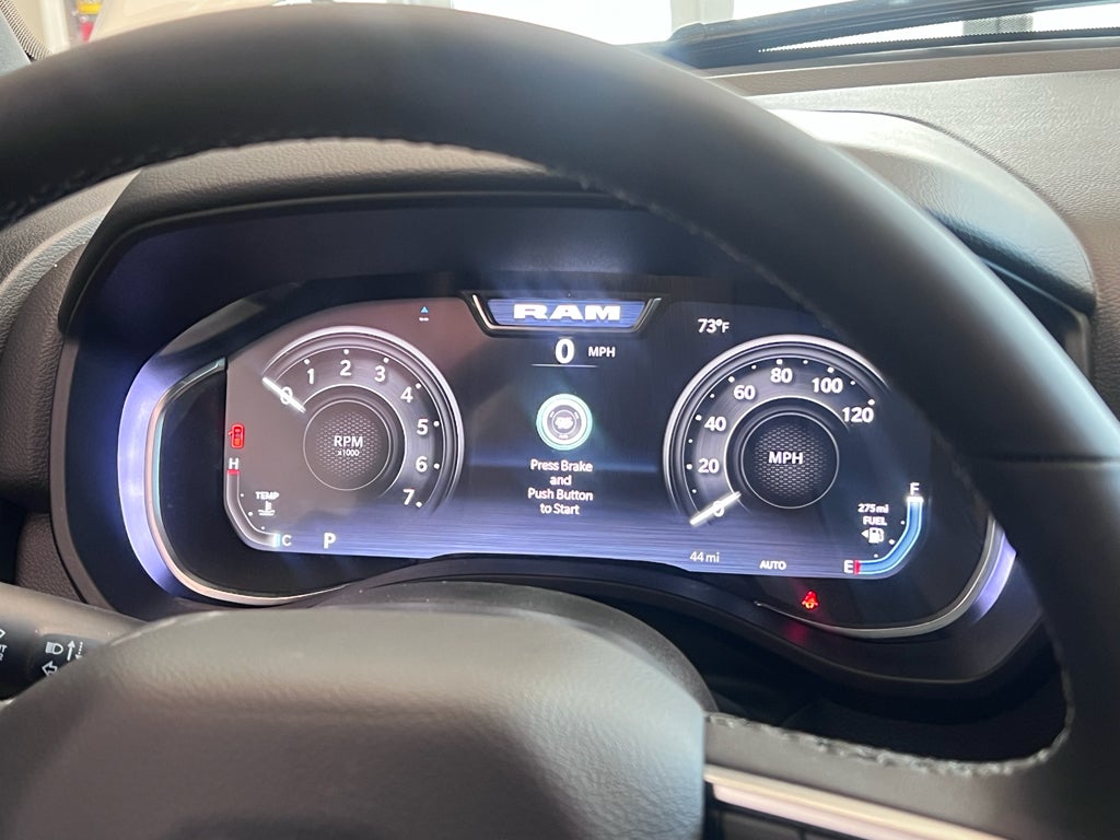 You'll never again be lost in a crowded city or a country region with the navigation system on it. The vehicle is equipped with the latest generation of XM/Sirius Radio. Keep your hands warm all winter with a heated steering wheel in this Ram 1500 . The satellite radio system in it gives you access to hundreds of nation-wide radio stations with a clear digital signal. The vehicle features a hands-free Bluetooth® phone system. Never get into a cold vehicle again with the remote start feature on this Ram 1500. This model's Forward Collision Warning feature alerts drivers to potential front-end collisions. This vehicle offers Android Auto for seamless smartphone integration. The vehicle has automated speed control that adjusts to maintain a safe following distance, enhancing highway driving convenience. Apple CarPlay: Seamless smartphone integration for this unit - stay connected and entertained on the go! This Ram 1500 offers Automatic Climate Control for personalized comfort.