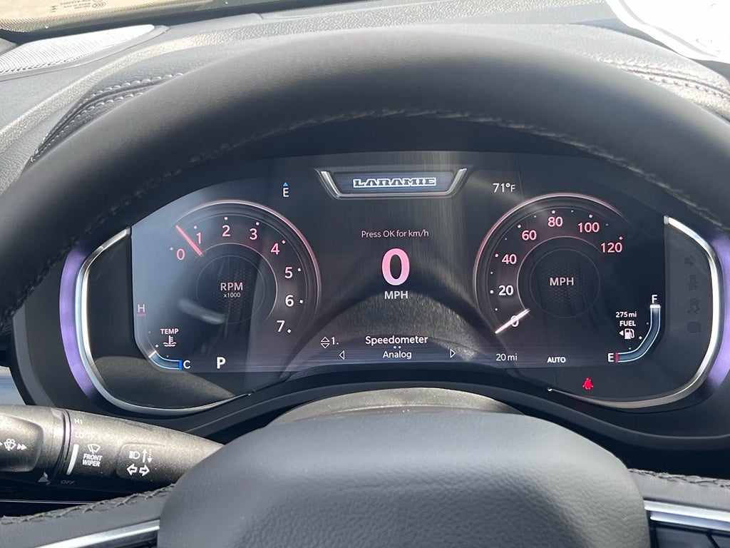 Quick Order Package 27H Laramie. Laramie Level 2 Equipment Group: SiriusXM Radio Service; USB Host Flip; Rain Sensitive Windshield Wipers; 14.4" Touchscreen Display; Integrated Center Stack Radio; Front Passenger Interactive Display; Integrated Voice Command with Bluetooth®; Connectivity - US/Canada; Uconnect 5 Nav with 14.4" Display; GPS Navigation; 4G LTE Wi-Fi Hot Spot; Harman/kardon 19 Speaker Premium Sound; SiriusXM with 360L; Connected Travel and Traffic Services; Cluster 12" TFT Color Display; Power Tailgate. Night Edition: Black Headlamp Bezels; Auto Power-Folding Mirrors; 22" X 9" Forged Aluminum Wheels; Exterior Mirrors with Heating Element; Proximity Approach/departure Lamps; Auto Dim Exterior Driver Mirror; Anti-Spin Differential Rear Axle; Accent Color Door Handles; Black Interior Accents; Body Color Front Bumper; Grille Surround 3 Black Texture 2 Black; Body Color Rear Bumper with Step Pads; RAM Grille Badge - Black; Black Painted Exterior Mirrors Caps; Exterior Mirrors Approach Lamps; Accent Color Premium Power Mirrors; Exterior Mirrors with Supplemental Signals; Sport Performance Hood; Exterior Mirrors Courtesy Lamps; Black Exterior Truck Badging; Accent Color Tailgate Handle; Exterior Mirrors with Memory; Dual Exhaust with Black Tips; Convex Wide-Angle Exterior Mirror Insert; Black Tail Lamp Bezels. Bed Utility Group: MOPAR Spray in Bedliner; MOPAR Deployable Bed Step; MOPAR 4 Adjustable Cargo Tie-Down Hooks; Exterior 115V AC Outlet. 22" X 9" Forged Aluminum Wheels. Anti-Spin Differential Rear Axle. MyFlexCare Service Plan. 3.92 Rear Axle Ratio. **Equipment listed is based on original vehicle build and subject to change. Please confirm the accuracy of the included equipment by calling the dealer prior to purchase.**