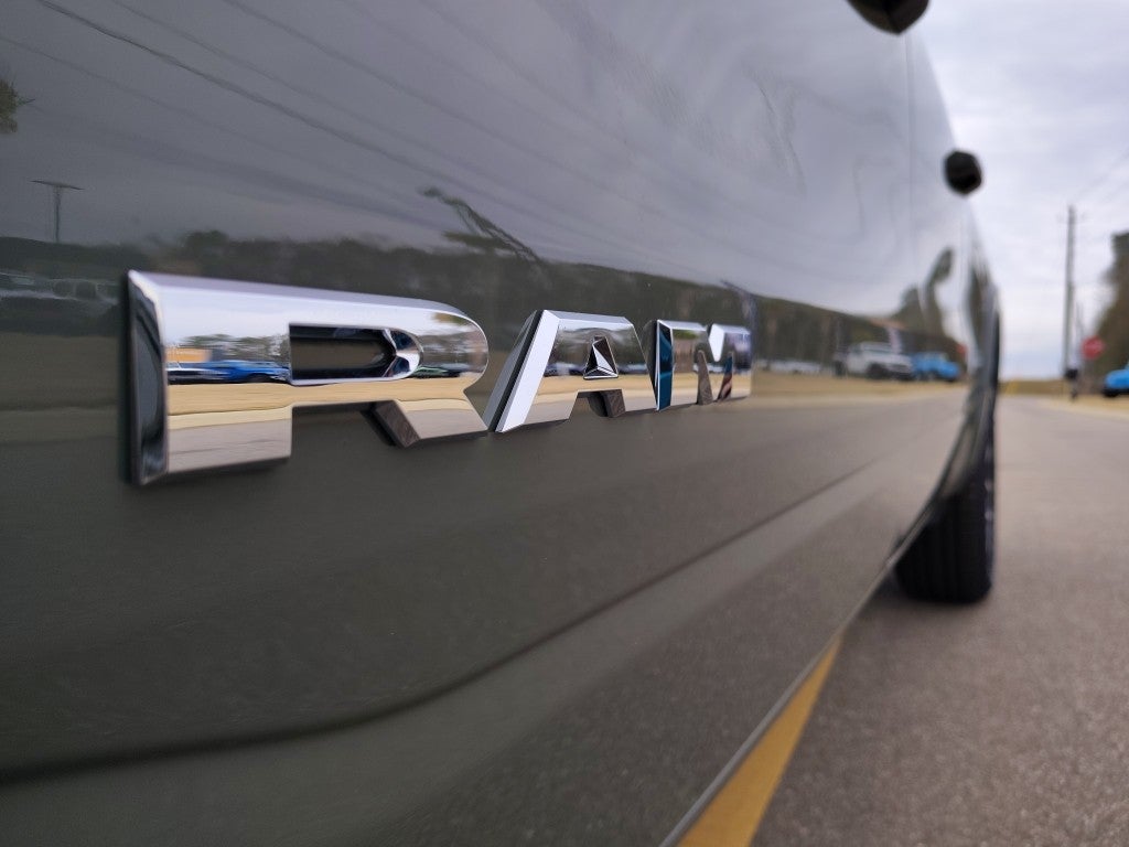 Quick Order Package 27H Laramie. Laramie Level 1 Equipment Group: Remote Tailgate Release; Rain Sensitive Windshield Wipers. Sport Appearance Package: 275/55R20 OWL All Season Tires; Accent Color Premium Power Mirrors; Exterior Mirrors with Supplemental Signals; Sport Performance Hood; Exterior Mirrors Courtesy Lamps; RAM Grille Badge - Chrome; Auto Power-Folding Mirrors; Exterior Mirrors with Heating Element; Auto Dim Exterior Driver Mirror; Exterior Mirrors with Memory; Black Interior Accents; Body Color Front Bumper; Convex Wide-Angle Exterior Mirror Insert; Body Color Rear Bumper with Step Pads; Bridgestone Brand Tires; Grille Surround 3 Body Color Tex 2 Black; Black Painted Exterior Mirrors Caps. Anti-Spin Differential Rear Axle. 33 Gallon Fuel Tank. MyFlexCare Service Plan. 3.92 Rear Axle Ratio. **Equipment listed is based on original vehicle build and subject to change. Please confirm the accuracy of the included equipment by calling the dealer prior to purchase.**