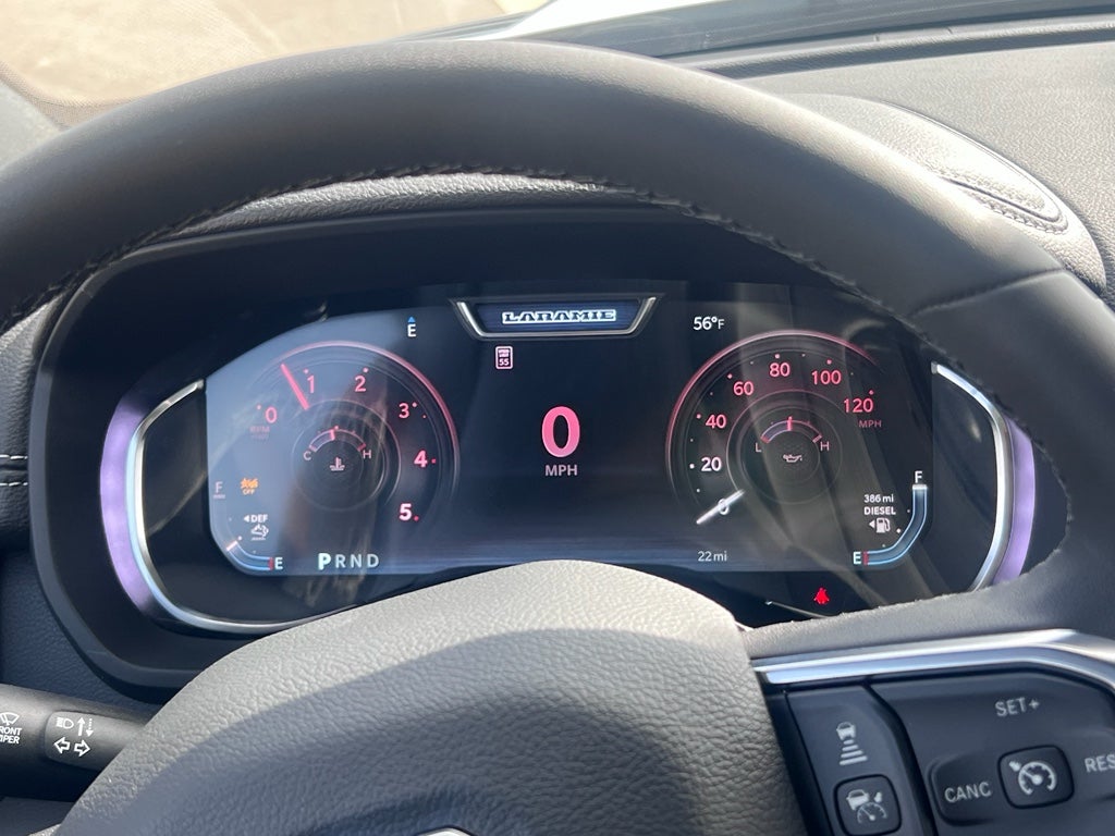 Quick Order Package 24H Laramie. Night Edition: Firestone Brand Tires; LT285/60R20E OWL On/off Road Tires; Black Exterior Truck Badging; 20" X 8.0" Black Painted Aluminum Wheels; Gloss Black Grille Billets/accents; Body Color Grille-Surround; Sport Performance Hood; Black Exterior Mirrors; Black Wheel Center Hub. Laramie Level 2 Plus Equipment Group: Google Android Auto; SiriusXM Radio Service; Power Adjustable Pedals with Memory; For Details. Visit DriveUconnect.com; For More Info. Call 800-643-2112; Integrated Voice Command with Bluetooth®; Emergency Vehicle Alert System (EVAS); Power Deployable Running Boards; Auto Power-Folding Mirrors; Anti-Spin Differential Rear Axle; Drowsy Driver Detection; Mirror Running Lights; MOPAR Deployable Bed Step; Alexa Built-In; Apple CarPlay; Power-Adjustable Convex Aux Mirrors; Active Lane Management System; Forward and Reverse Utility Lights; Disassociated Touchscreen Display; Remote Tailgate Release; 17 Speaker Harman/kardon Premium Sound; 2nd Row in Floor Storage Bins; Center Stop Lamp with Cargo View Camera; Rain Sensitive Windshield Wipers; LED Bed Lighting; Connectivity - US/Canada; Traffic Sign Recognition; GPS Navigation; 4G LTE Wi-Fi Hot Spot; Adaptive Steering System; GPS Antenna Input; Exterior Mirrors with Heating Element; Auto Dim Exterior Mirror; SiriusXM with 360L; Global Telematics Box Module; Connected Travel and Traffic Services; Foam Bottle Insert (door Trim Panel); Off-Road Info Pages; Selectable Tire Fill Alert; Trailer Tow Pages; Leather Trimmed Bucket Seats; HD Radio; 14.4" Touchscreen Display; Power Heated Fold Telescopic Mirrors with Memory; Exterior Mirrors with Supplemental Signals; Exterior Mirrors Courtesy Lamps; Uconnect 5 Nav with 14.4" Display; MOPAR Spray in Bedliner; Auto High Beam Headlamp Control; Chrome Exterior Mirrors; Exterior Mirrors with Memory; Power Adjust Mirrors; Power Telescoping Mirrors; Auto Dim Exterior Passenger Mirror; Auto Adjust in Reverse Exterior Mirrors. Auto Level Rear Air Suspension. Power Deployable Running Boards. 5th Wheel/gooseneck Towing Prep Group. Leather Trimmed Bucket Seats. Center Stop Lamp with Cargo View Camera. MyFlexCare Service Diesel. **Equipment listed is based on original vehicle build and subject to change. Please confirm the accuracy of the included equipment by calling the dealer prior to purchase.**