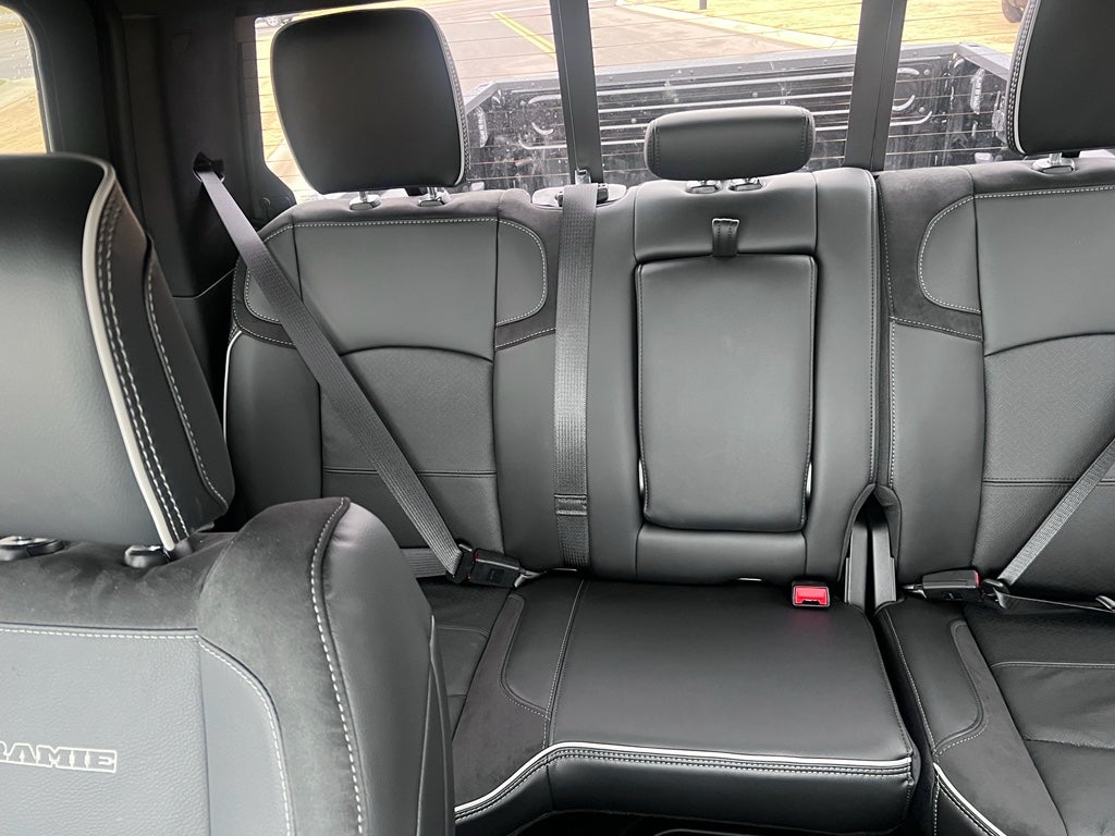 Quick Order Package 24H Laramie. Night Edition: Firestone Brand Tires; LT285/60R20E OWL On/off Road Tires; Black Exterior Truck Badging; 20" X 8.0" Black Painted Aluminum Wheels; Gloss Black Grille Billets/accents; Body Color Grille-Surround; Sport Performance Hood; Black Exterior Mirrors; Black Wheel Center Hub. Laramie Level 2 Plus Equipment Group: Google Android Auto; SiriusXM Radio Service; Power Adjustable Pedals with Memory; For Details. Visit DriveUconnect.com; For More Info. Call 800-643-2112; Integrated Voice Command with Bluetooth®; Emergency Vehicle Alert System (EVAS); Power Deployable Running Boards; Auto Power-Folding Mirrors; Anti-Spin Differential Rear Axle; Drowsy Driver Detection; Mirror Running Lights; MOPAR Deployable Bed Step; Alexa Built-In; Apple CarPlay; Power-Adjustable Convex Aux Mirrors; Active Lane Management System; Forward and Reverse Utility Lights; Disassociated Touchscreen Display; Remote Tailgate Release; 17 Speaker Harman/kardon Premium Sound; 2nd Row in Floor Storage Bins; Center Stop Lamp with Cargo View Camera; Rain Sensitive Windshield Wipers; LED Bed Lighting; Connectivity - US/Canada; Traffic Sign Recognition; GPS Navigation; 4G LTE Wi-Fi Hot Spot; Adaptive Steering System; GPS Antenna Input; Exterior Mirrors with Heating Element; Auto Dim Exterior Mirror; SiriusXM with 360L; Global Telematics Box Module; Connected Travel and Traffic Services; Foam Bottle Insert (door Trim Panel); Off-Road Info Pages; Selectable Tire Fill Alert; Trailer Tow Pages; Leather Trimmed Bucket Seats; HD Radio; 14.4" Touchscreen Display; Power Heated Fold Telescopic Mirrors with Memory; Exterior Mirrors with Supplemental Signals; Exterior Mirrors Courtesy Lamps; Uconnect 5 Nav with 14.4" Display; MOPAR Spray in Bedliner; Auto High Beam Headlamp Control; Chrome Exterior Mirrors; Exterior Mirrors with Memory; Power Adjust Mirrors; Power Telescoping Mirrors; Auto Dim Exterior Passenger Mirror; Auto Adjust in Reverse Exterior Mirrors. Auto Level Rear Air Suspension. Power Deployable Running Boards. 5th Wheel/gooseneck Towing Prep Group. Leather Trimmed Bucket Seats. Center Stop Lamp with Cargo View Camera. MyFlexCare Service Diesel. Diamond Black Crystal PC. **Equipment listed is based on original vehicle build and subject to change. Please confirm the accuracy of the included equipment by calling the dealer prior to purchase.**