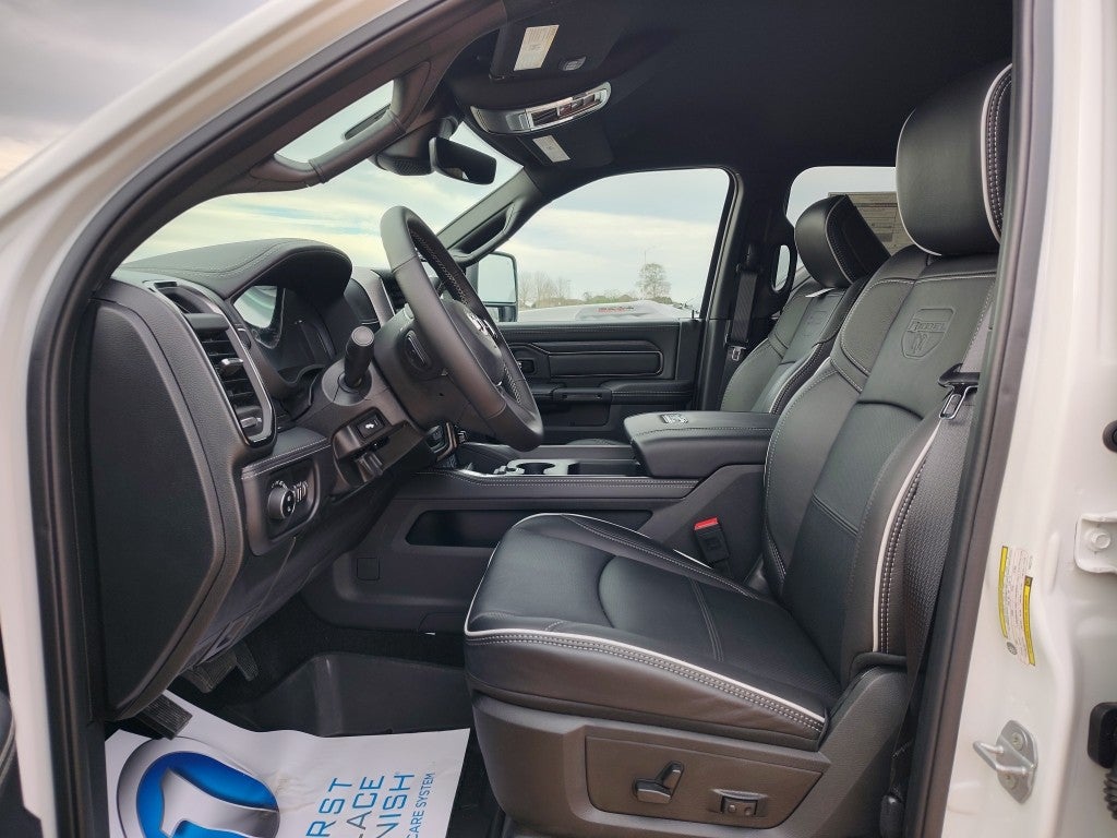 Quick Order Package 24R Rebel. Rebel Level 2 Equipment Group: Google Android Auto; SiriusXM Radio Service; Power Adjustable Pedals with Memory; For Details. Visit DriveUconnect.com; For More Info. Call 800-643-2112; Front Passenger Interactive Display; Integrated Voice Command with Bluetooth®; Emergency Vehicle Alert System (EVAS); Power Deployable Running Boards; Auto Power-Folding Mirrors; Mirror Running Lights; MOPAR Deployable Bed Step; Alexa Built-In; Apple CarPlay; Power-Adjustable Convex Aux Mirrors; Premium Overhead Console; Forward and Reverse Utility Lights; Disassociated Touchscreen Display; Leather Wrapped Shift Control; 17 Speaker Harman/kardon Premium Sound; LED Interior Lighting; LED Dome Lamp with On/off Switch; Universal Garage Door Opener; Sun Visors with Illuminated Vanity Mirrors; Leather Trimmed Bucket Seats (NL); Center Stop Lamp with Cargo View Camera; Rain Sensitive Windshield Wipers; LED Bed Lighting; Connectivity - US/Canada; Body Color Door Handles; GPS Navigation; 4G LTE Wi-Fi Hot Spot; GPS Antenna Input; Overhead LED Lamps; Exterior Mirrors with Heating Element; Auto Dim Exterior Mirror; SiriusXM with 360L; Global Telematics Box Module; Leather Wrapped Grab Handle; Connected Travel and Traffic Services; Black Exterior Mirrors; Off-Road Info Pages; Selectable Tire Fill Alert; Trailer Tow Pages; HD Radio; 14.4" Touchscreen Display; Power Heated Fold Telescopic Mirrors with Memory; Exterior Mirrors with Supplemental Signals; Sport Performance Hood; Exterior Mirrors Courtesy Lamps; Uconnect 5 Nav with 14.4" Display; MOPAR Spray in Bedliner; Front Door Locks 2-Door Passive Entry; Auto High Beam Headlamp Control; Exterior Mirrors with Memory; Luxury Door Trim Panel; Aluminum Litho Instrument Panel Bezels with Black Trim; Power Adjust Mirrors; Power Telescoping Mirrors; MOPAR Front and Rear Rubber Floor Mats; Auto Dim Exterior Passenger Mirror; Auto Adjust in Reverse Exterior Mirrors. on Board Power System - 2.4KW: Dual Alternators Rated At 480 Amps. Quick Order Package 2UR Rebel. Auto Level Rear Air Suspension. Sport Performance Hood. 5th Wheel/gooseneck Towing Prep Group. Center Stop Lamp with Cargo View Camera. MyFlexCare Service Diesel. MOPAR Front and Rear Rubber Floor Mats. **Equipment listed is based on original vehicle build and subject to change. Please confirm the accuracy of the included equipment by calling the dealer prior to purchase.**