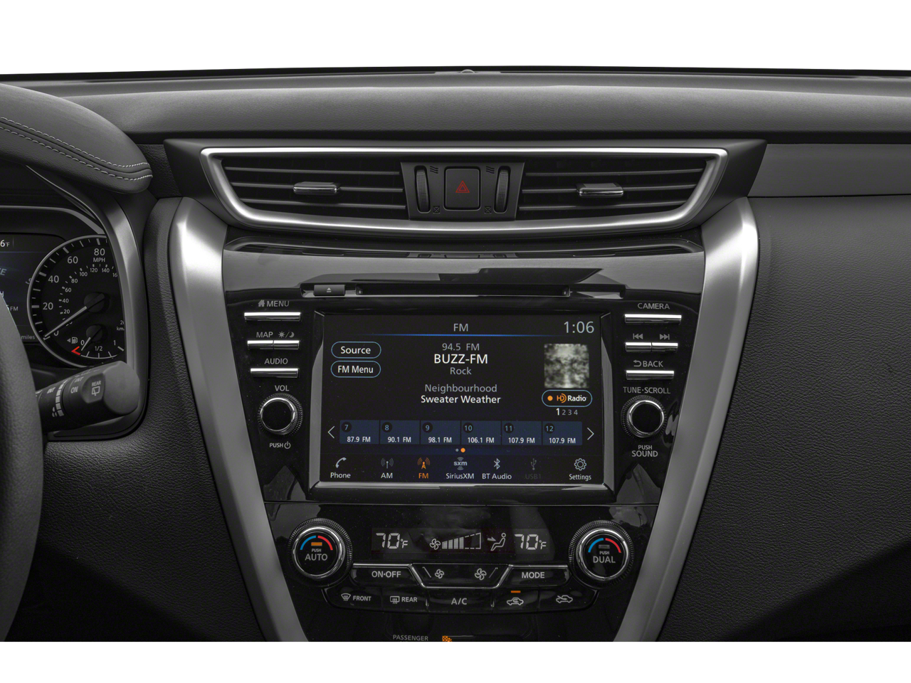 See what's behind you with the back up camera on this unit. This unit's Forward Collision Warning system alerts the driver to potential front-end collisions, enhancing safety. Start this unit from inside with remote start. This vehicle is a certified CARFAX 1-owner. It comes equipped with Android Auto for seamless smartphone integration on the road. The leather seats in this unit are a must for buyers looking for comfort, durability, and style. This model has a clean CARFAX vehicle history report. The installed navigation system will keep you on the right path. The vehicle is equipped with the latest generation of XM/Sirius Radio. This Nissan Murano features a high end BOSE stereo system. Apple CarPlay: Seamless smartphone integration for the vehicle - stay connected and entertained on the go! Keep your hands warm all winter with a heated steering wheel in the vehicle . It features a hands-free Bluetooth® phone system.